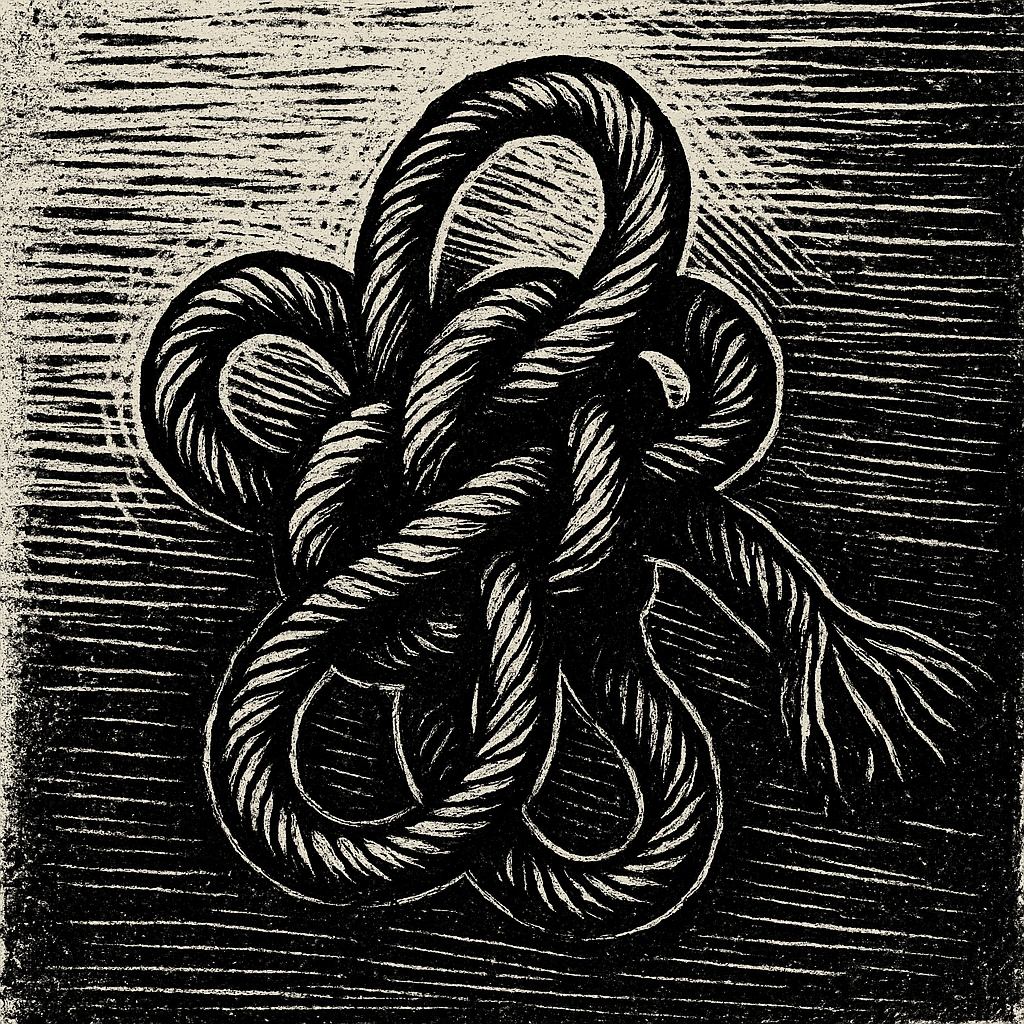 Description: A length of ancient rope, twisted and blackened with age, tied into a complex, inhuman knot. The strands are frayed in places, and a faint, musky odor clings to the fibers, like smoke and wet straw. The knot itself seems to defy traditional patterns, bending in ways that should be impossible given the rope’s stiffness.