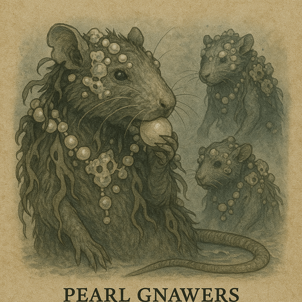 Pearlgnawers are rodent-sized, semi-sentient fae beasts that dwell in memory pearl beds deep within the Salt Hollows. These creatures do not feed on flesh or light—they consume memory, specifically by gnawing on the calcified emotional nodes known as pearl-thoughts, which cluster around dream-coral and grief vents.