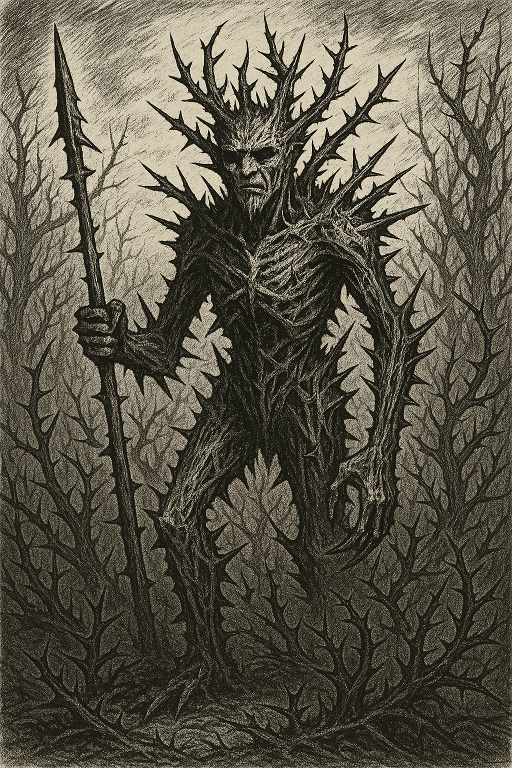 • Form: Tree-humanoid hybrids. Bark-covered torsos, vine-wrapped limbs, and crowns of briars and wild roses.