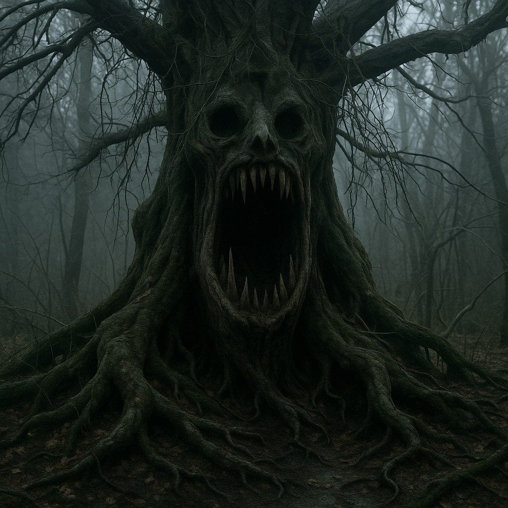 “It’s not a tree, it’s a mouth. A big one. You can tell because it listens without blinking. I think it likes things it shouldn’t know.”