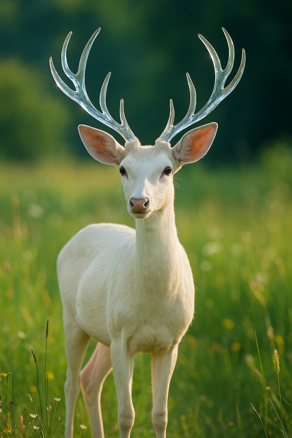 Glass-Horned Deer are elegant, ethereal creatures with bodies that shimmer faintly like frosted glass. Their antlers are composed of transparent crystalline material that resonates with a faint, bell-like tone when moved or struck by wind. They move in choreographed, ritualistic patterns resembling dances, often observed along the mirrored plains and glass fields of the Pale Country.