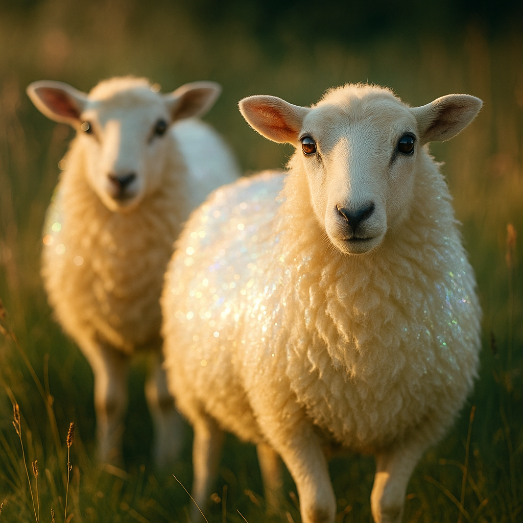 Mirrowool Ewes resemble domestic sheep native to downland regions but possess a luminous fleece that shimmers with an iridescent, mother-of-pearl quality. Their eyes reflect perfectly, acting like living mirrors that reveal not only the observer’s image but sometimes distorted reflections of their hidden regrets or failures.