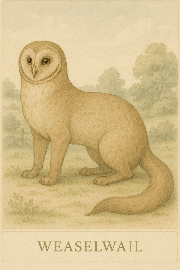 Weaselwails are small, alabaster-furred carnivores resembling weasels or stoats, but with faintly glowing eyes and elongated limbs. They hunt in coordinated packs, communicating via high-pitched, eerie howls that echo across the grasslands, unnerving all who hear them.