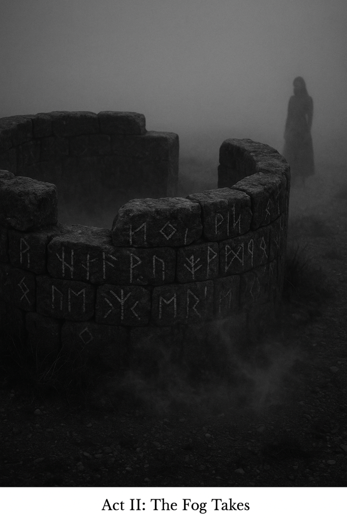 He opened his eyes. “She was always there. I could never see her clearly. The place—it wasn’t a house. It was more like the idea of a house. Walls that weren’t walls. A hearth that never gave off heat. Fog outside every window, though I couldn’t find the doors.”