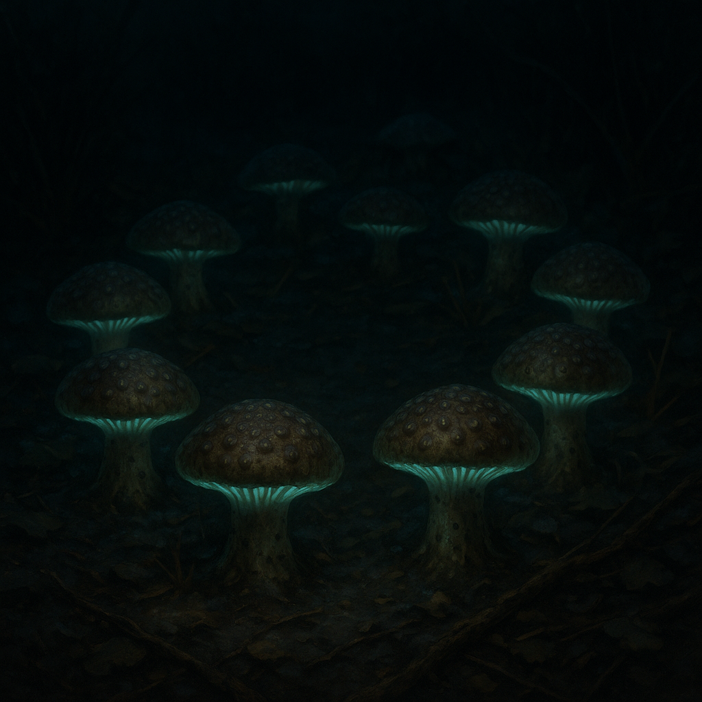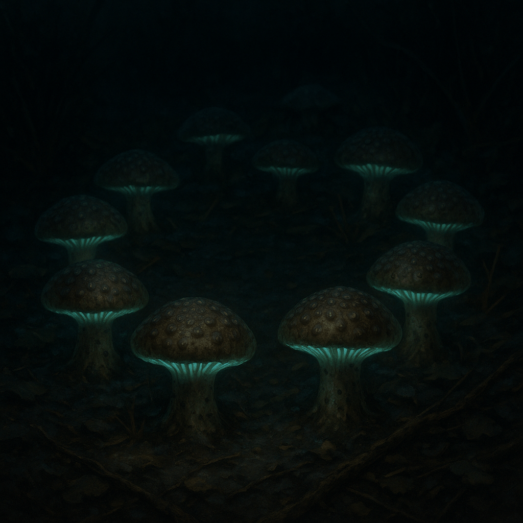 Signs of PresenceToad-shaped mushrooms in glyph patterns, unexplained responses to private speech, greenish fungal glow in grief-heavy spaces