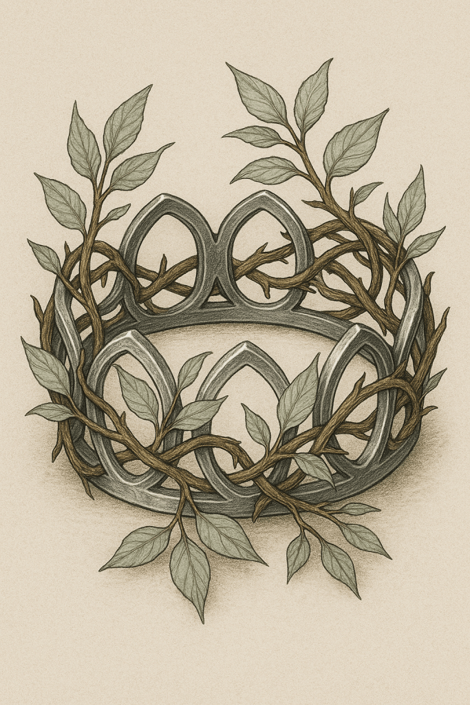 A delicate circlet woven from shimmering Mirrorvine leaves, which reflect not the immediate surroundings but shifting images of distant places and alternate realities. The crown pulses faintly with otherworldly light and seems to blur the boundaries between wearer and vision.
