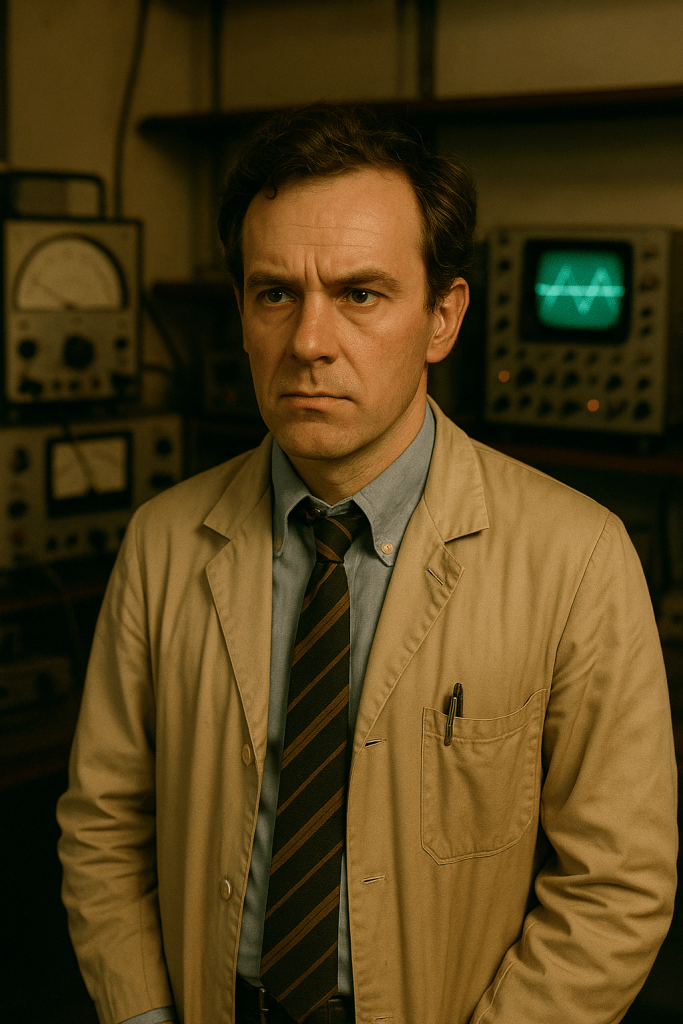 Brilliant, irritable, deeply superstitious beneath his rationalist veneer. Chain-smokes Players No.6 and carries a small horseshoe magnet “for luck.” Listens obsessively to shortwave radio, claiming the static “talks back.” Prone to mood swings — the FDG file notes “possible electrochemical destabilisation due to long-term exposure.”