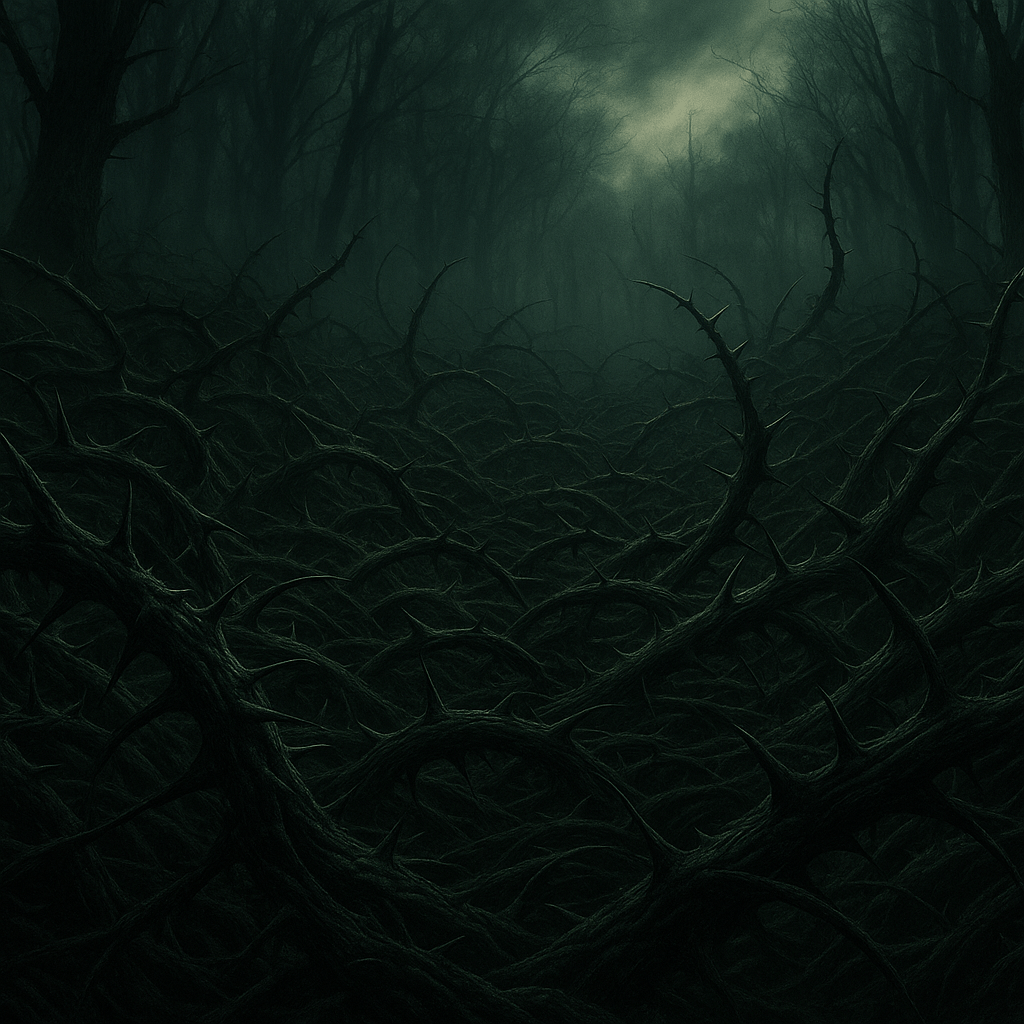 A thorn-choked wilderness with shifting paths that lead into memories or across lives.